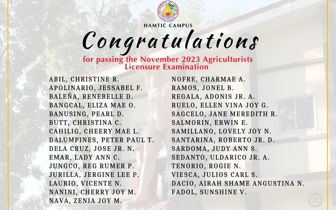 Congratulations to the 29 New Licensed Agriculturists from University of Antique Hamtic Campus who passed the November 2023 Licensure Examination for Agriculturists. On the data posted by the...