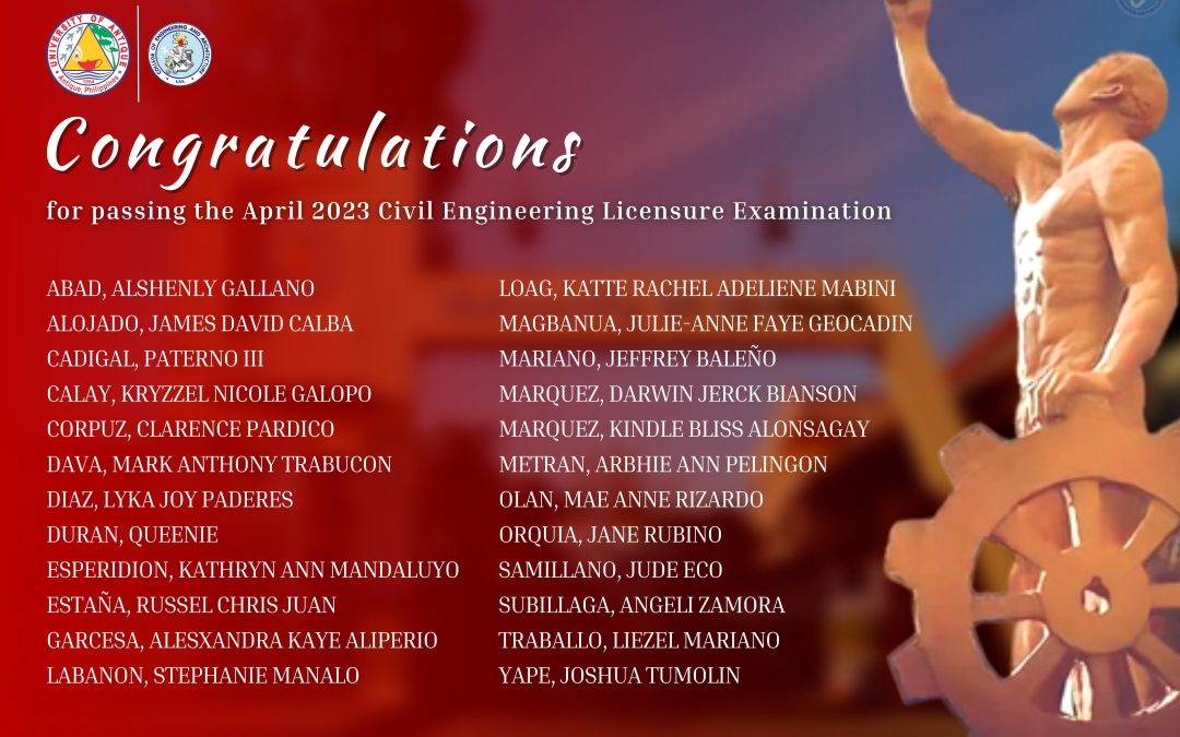 UA produces 24 Civil Engineers University of Antique College of Engineering and Architecture (CEA) successfully added 24 Kasubays to the list of new engineers on the April 2023 Civil Engineers...
