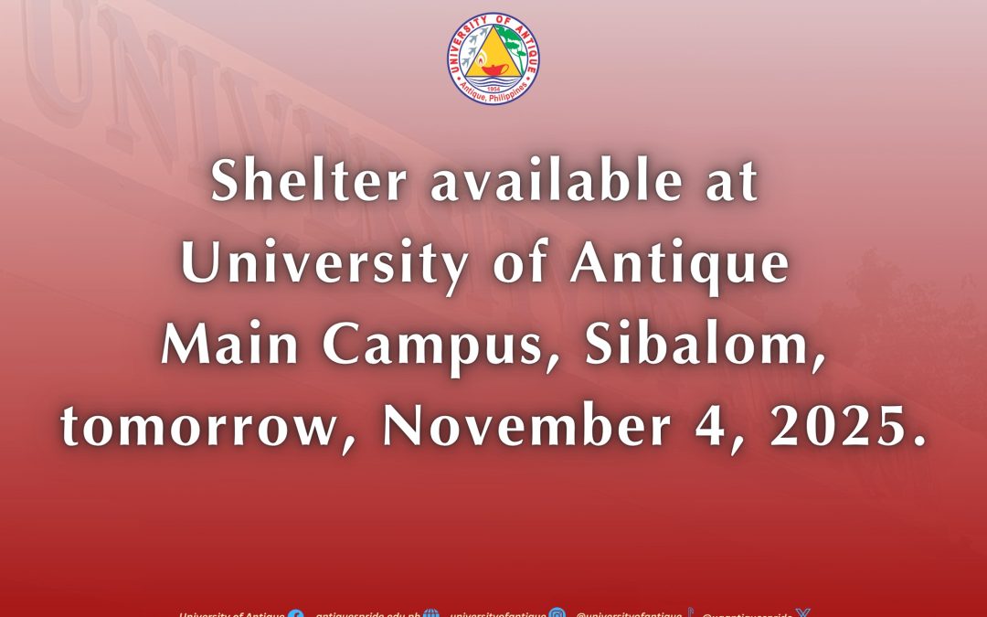 In line with the directive of the Local Government Unit of Sibalom, office operations and classes in the University of Antique Main Campus are suspended tomorrow, November 3, 2025, in preparation...