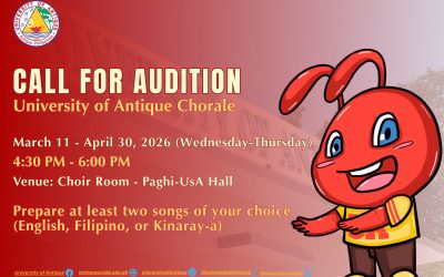 𝐂𝐚𝐥𝐥𝐢𝐧𝐠 𝐚𝐥𝐥 𝐢𝐧𝐭𝐞𝐫𝐞𝐬𝐭𝐞𝐝 𝐊𝐚𝐬𝐮𝐛𝐚𝐲! The 𝐔𝐧𝐢𝐯𝐞𝐫𝐬𝐢𝐭𝐲 𝐨𝐟 𝐀𝐧𝐭𝐢𝐪𝐮𝐞 𝐂𝐡𝐨𝐫𝐚𝐥𝐞 (UAC) is open for talented and passionate auditionees who are ready to share their voices and serve the university through music. Take note of the 𝐚𝐮𝐝𝐢𝐭𝐢𝐨𝐧 𝐬𝐜𝐡𝐞𝐝𝐮𝐥𝐞: March 11 to April 30, 2026 (Wednesday – Thursday) 4:30 PM to 6:00...