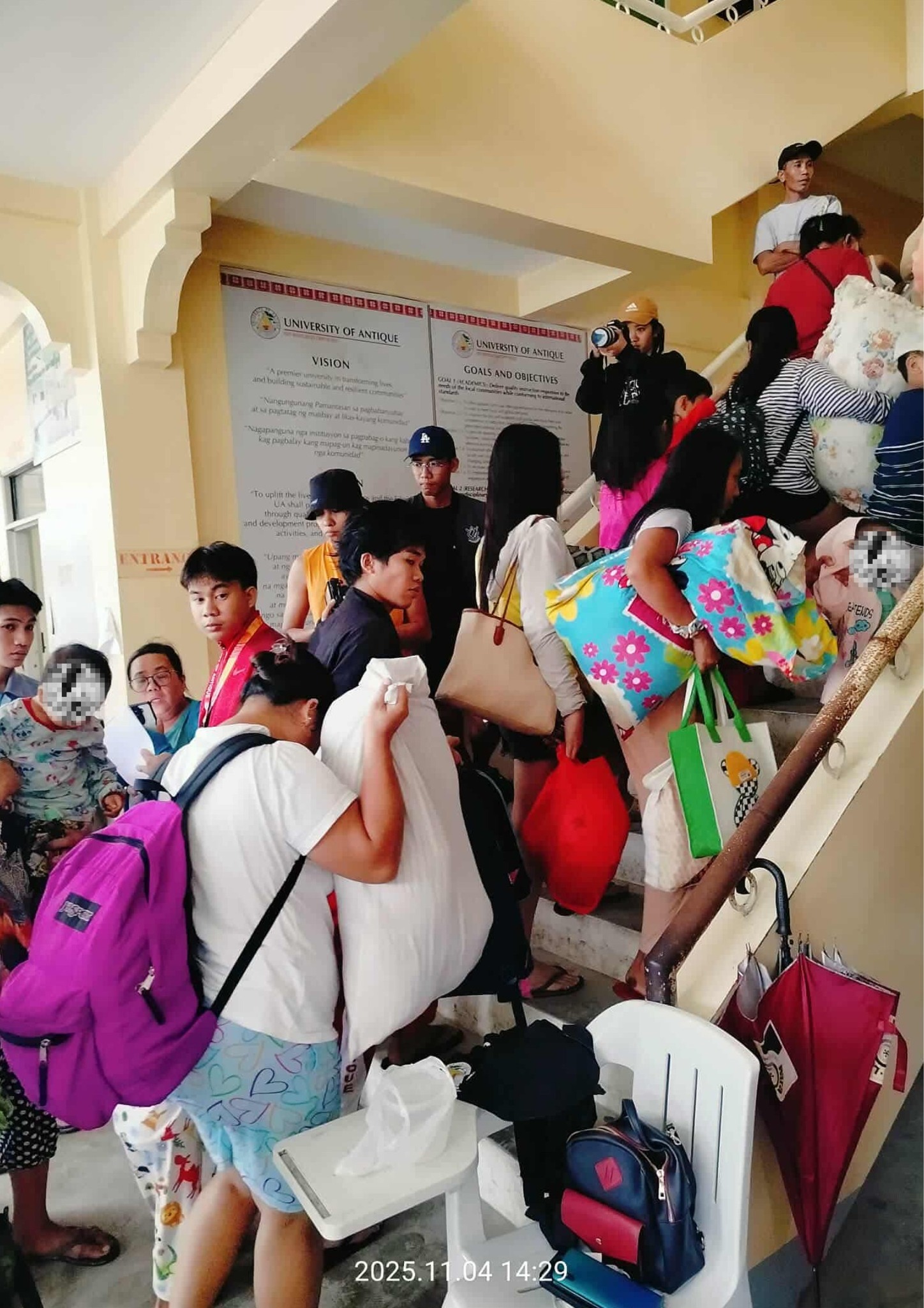 As of 2:46 PM today, November 4, University of Antique Main Campus has taken in 106 evacuees from Barangay Alangan and District I, Sibalom.